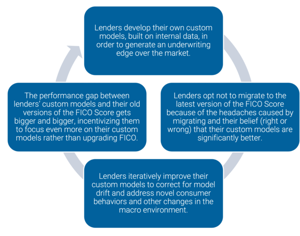 Fintech Takes has a longer-form and more current critique of FICO, including the increased lender use of in-house using internal data, supposedly to supplement FICO. But as the piece argues, it is in the process will undermine FICO, as lenders delay or don’t bother buying FICO upgrades and invest in their own models instead.