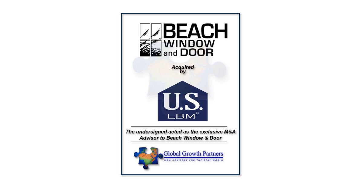 Global Growth Partners (“GGP”) is proud to announce that Beach Window & Door (“Beach”) has partnered with U.S. LBM as it continues its heritage of growth throughout the Carolinas.