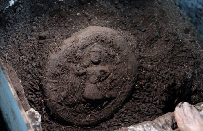 Archaeologists have discovered a very rare depiction of Jesus on a carbonized ancient bread loaf. Credit: Karaman Valiliği