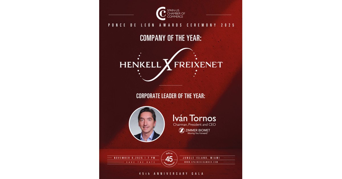 The Chamber presented its highest annual distinctions, the Ponce de León Awards, recognizing Henkell Freixenet as Company of the Year, in recognition of its remarkable journey from a family-owned brand to a global industry leader and Iván Tornos, Chairman, President & CEO of Zimmer Biomet Holdings, Inc., as Corporate Leader of the Year, for exemplifying how Spanish talent continues to shape and inspire global business and innovation.