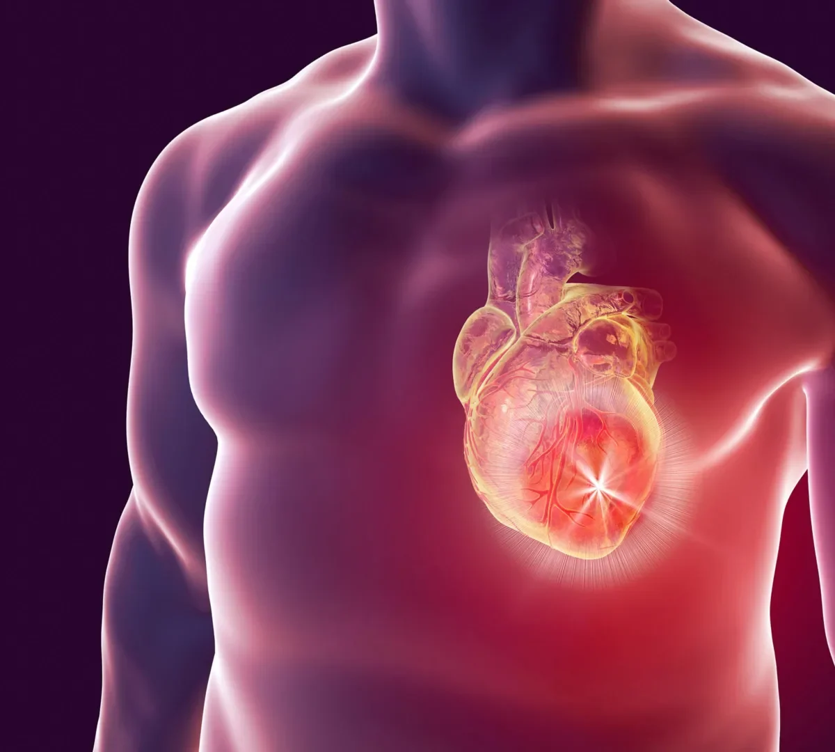 A heart attack deprives heart muscle cells of oxygen and nutrients, causing many of them to die. As a protective response, the body forms scar tissue in the damaged area. Although this scarring helps maintain structural stability, it does not contract like healthy heart muscle. As a result, the remaining muscle must work harder over time, which can contribute to heart failure.