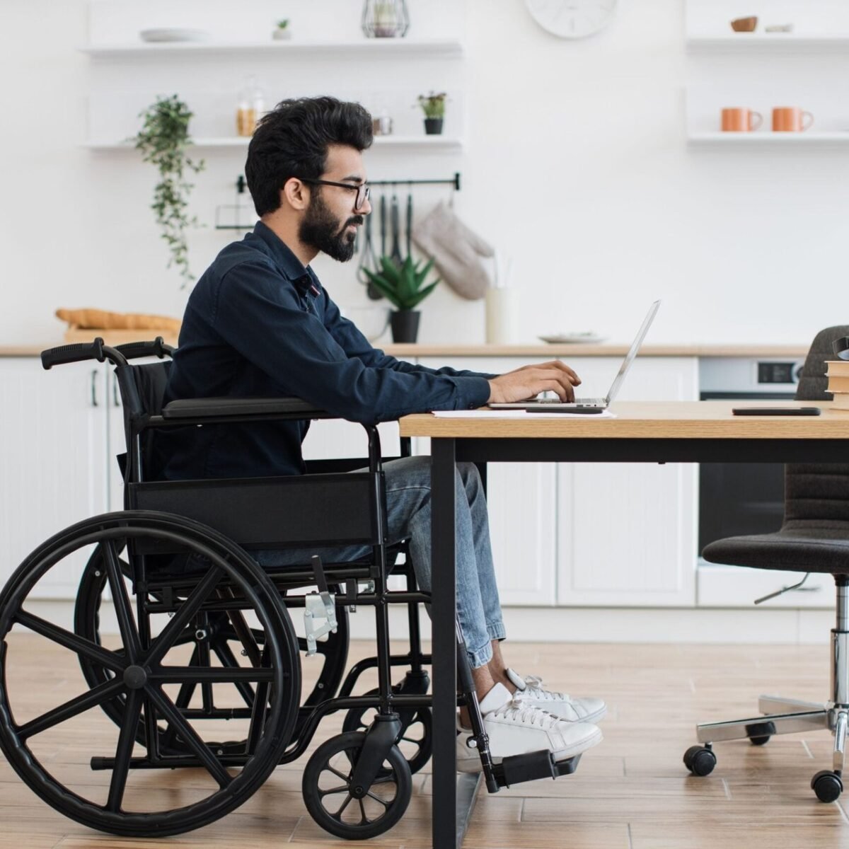 Man in wheelchair working remotely