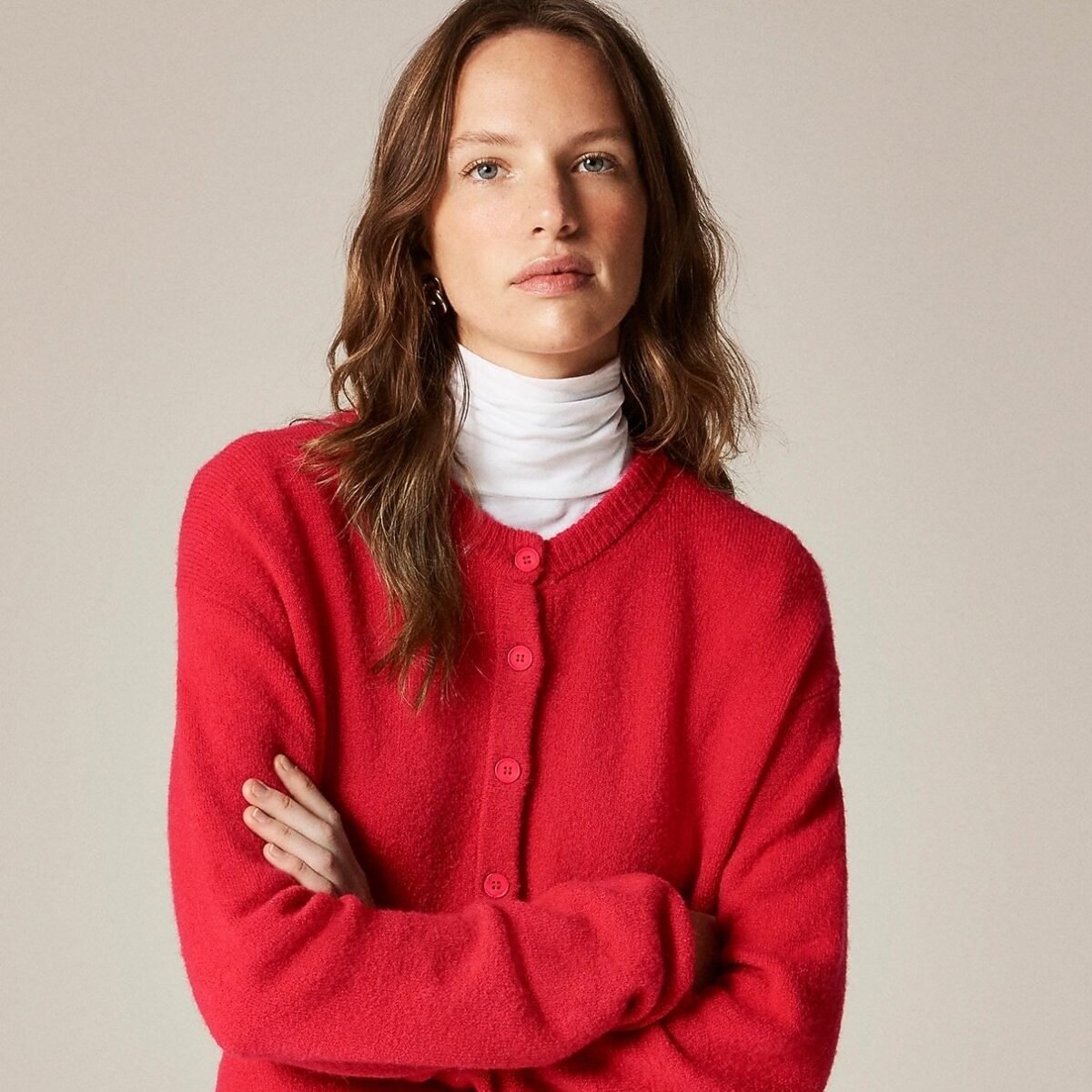 J.Crew’s denim is so good — one of the first-ever purchases I made with my high school babysitting money was a pair of their straight-leg jeans — and a wide-rib sweater dress would be stunning with a deep red lip.