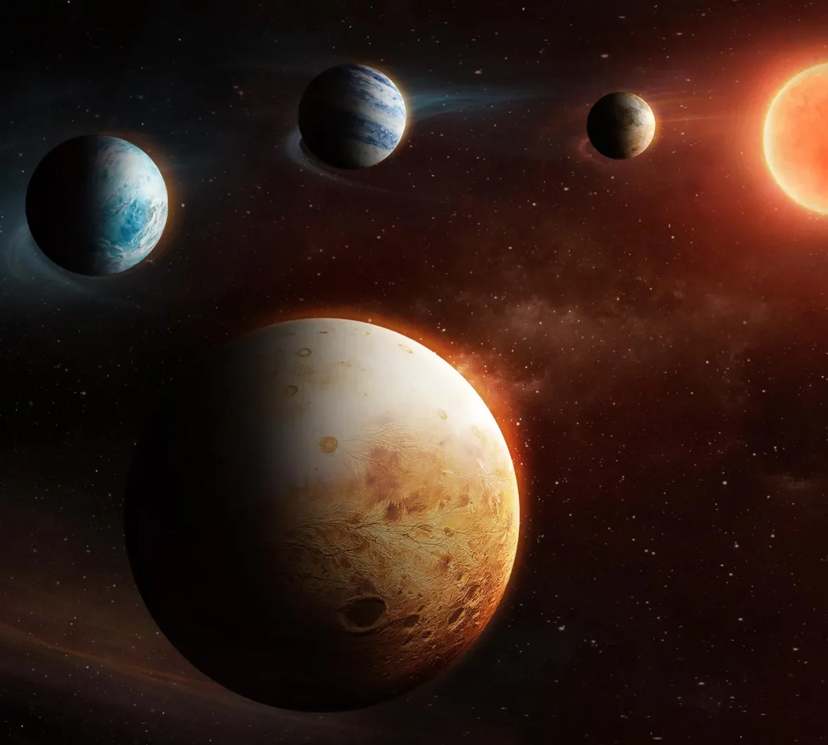 In most planetary systems observed across the Milky Way, scientists see the same basic layout. Small, rocky planets circle close to their star, while large gas giants orbit at greater distances. Our own Solar System fits this pattern. The inner planets: Mercury, Venus, Earth and Mars, are made mostly of rock and metal. Farther out, Jupiter, Saturn, Uranus and Neptune are dominated by thick layers of gas.