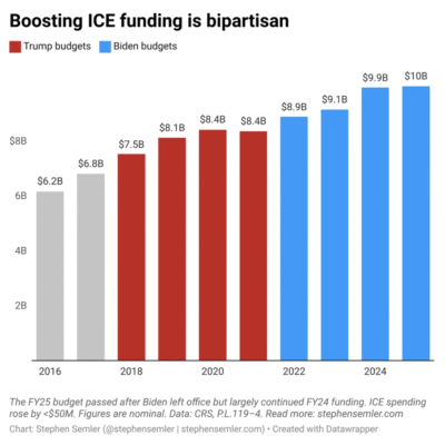 Conor here: I’m not sure why anyone would expect anything else. The Democrats are just as responsible for the masked agents terrorizing American streets as