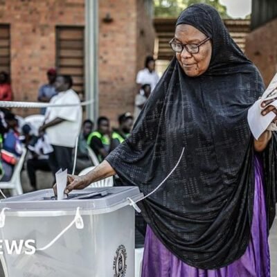 Sammy Awami,BBC Africa, Kampalaand Wycliffe Muia AFP via Getty Images More than 21 million Ugandans have registered to vote Polls have opened in Uganda’s presidential