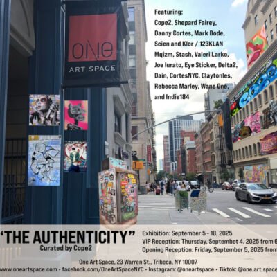 One Art Space Gallery, in Tribeca, NY premiere “The Authenticity,” an exhibition curated by graffiti writer Cope2 featuring Shepard Fairey, Danny Cortes, Stash and Many
